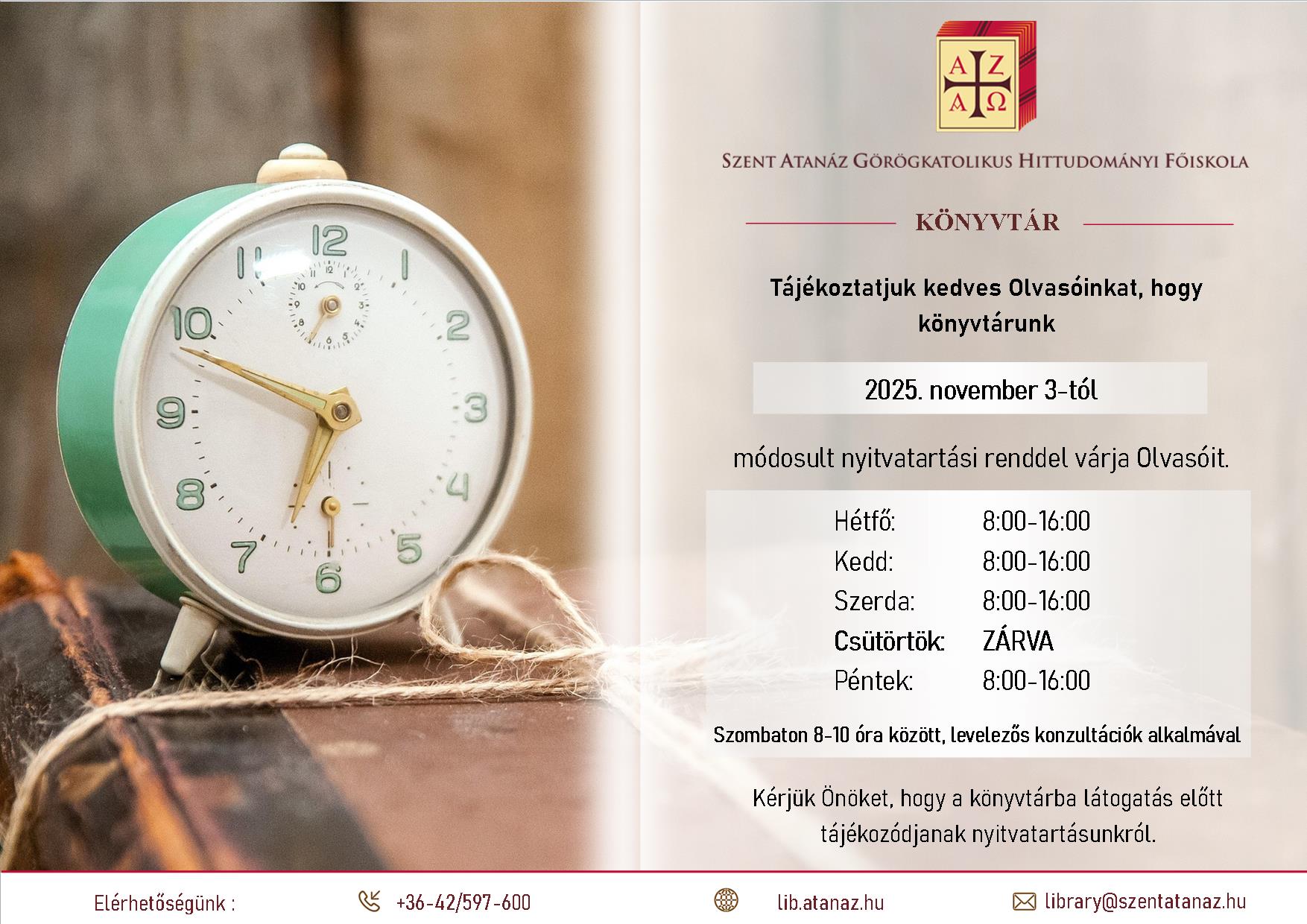 Kérjük, könyvtárba látogatás előtt tájékozódanak nyitvatartásunkról.